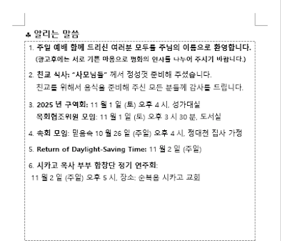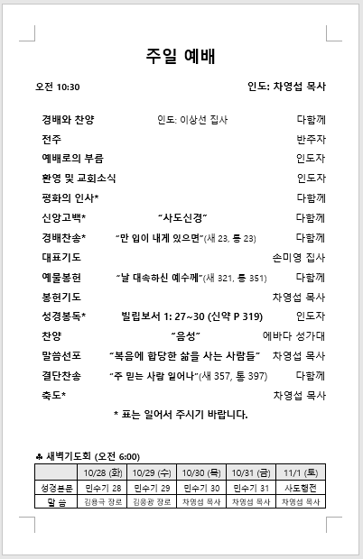 주보: 2025년 10월 26일 주일 예배