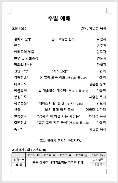 2025년 11월 23일 주일 주보
