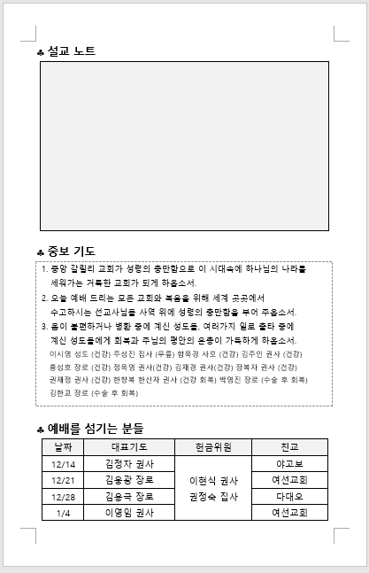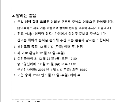 2025년 12월 7일 주일 예배 주보