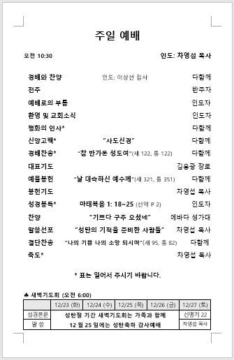 주보: 2025년 12월 21일 주일 예배