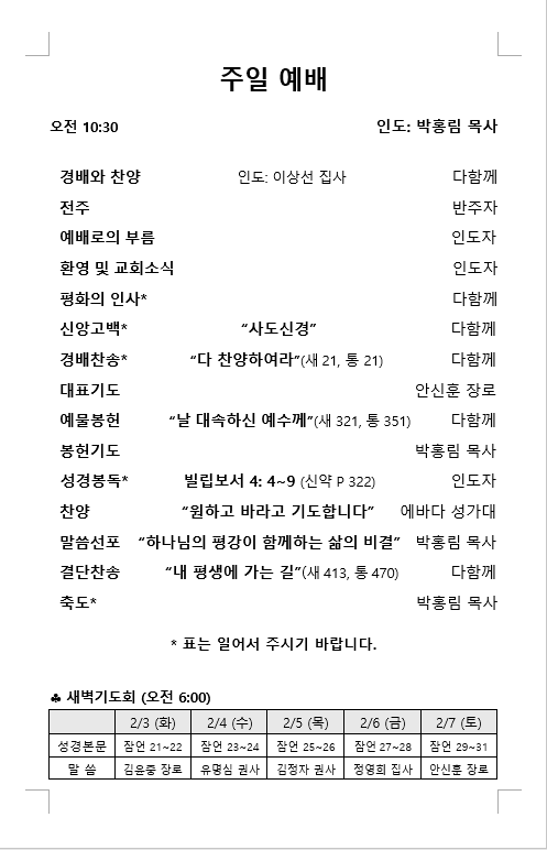 주보: 2026년 2월 1일 주일